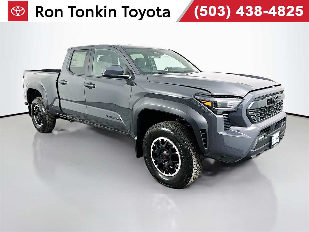 Recent Arrival! 2026 Toyota Tacoma 2.4L 4-Cylinder 8-Speed Automatic 4WD TRD Off-Road 4D Double Cab Dark Gray 18" Wheels, 3.583 Axle Ratio, 4-Wheel Disc Brakes, 6 Speakers, ABS brakes, Air Conditioning, All Weather Floor Liners, Alloy wheels, AM/FM radio: SiriusXM, Anti-whiplash front head restraints, Apple CarPlay/Android Auto, Auto High-beam Headlights, Auto-dimming Rear-View mirror, Automatic temperature control, Bed Step, Black Tailgate Insert, Brake assist, Bumpers: body-color, Door Edge Film, Door Panel Scuff Protector, Driver door bin, Driver vanity mirror, Dual front impact airbags, Dual front side impact airbags, Electronic Stability Control, Emergency communication system: Safety Connect (up to 10-year trial subscription), Exterior Parking Camera Rear, Fabric Seat Trim, Four wheel independent suspension, Front anti-roll bar, Front Bucket Seats, Front Center Armrest, Front fog lights, Front reading lights, Fully automatic headlights, Heated door mirrors, Heated Seats, Illuminated entry, JBL Premium Audio, Knee airbag, Leather Shift Knob, Leather steering wheel, Low tire pressure warning, Mudguards, Multimedia Glass Screen Protector, Occupant sensing airbag, Outside temperature display, Overhead airbag, Overhead console, Panic alarm, Passenger door bin, Passenger vanity mirror, Power door mirrors, Power steering, Power windows, Radio: 8" Toyota Audio Multimedia, Rear step bumper, Rear window defroster, Remote keyless entry, Security system, SofTex Seat Trim, Speed control, Speed-sensing steering, Split folding rear seat, Spray-on Bed Liner, Steering wheel mounted audio controls, Tachometer, Telescoping steering wheel, Tilt steering wheel, Traction control, TRD Off Road Package, Trip computer, Turn signal indicator mirrors, Variably intermittent wipers. 19/23 City/Highway MPGSome factory rebates may require factory financing, some special finance or lease rates are in lieu of factory rebates of specific make or model vehicles. Tax, title, licensing, documentation fee of $200, and dealer installed accessories are not included. Prices not available for Fleet or Commercial business's. Please confirm the accuracy of the included equipment by calling us prior to purchase. Price does not include Tax, Title, and License.