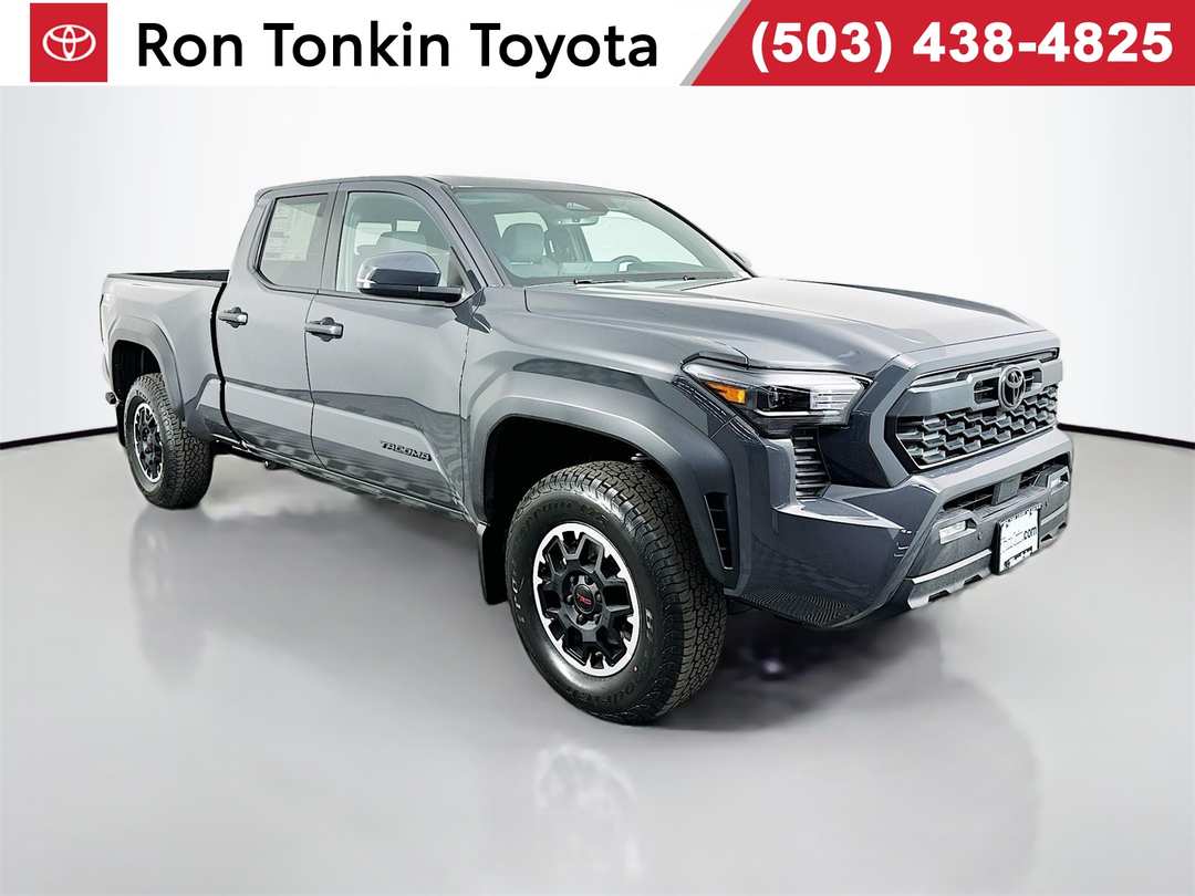 2026 Toyota Tacoma 2.4L 4-Cylinder 8-Speed Automatic 4WD TRD Off-Road 4D Double Cab Dark Gray 18" Wheels, 3.583 Axle Ratio, 4-Wheel Disc Brakes, 6 Speakers, ABS brakes, Air Conditioning, Alloy wheels, AM/FM radio: SiriusXM, Anti-whiplash front head restraints, Apple CarPlay/Android Auto, Auto High-beam Headlights, Auto-dimming Rear-View mirror, Automatic temperature control, Bed Step, Black Tailgate Insert, Brake assist, Bumpers: body-color, Door Edge Film, Door Panel Scuff Protector, Driver door bin, Driver vanity mirror, Dual front impact airbags, Dual front side impact airbags, Electronic Stability Control, Emergency communication system: Safety Connect (up to 10-year trial subscription), Exterior Parking Camera Rear, Fabric Seat Trim, Four wheel independent suspension, Front anti-roll bar, Front Bucket Seats, Front Center Armrest, Front fog lights, Front reading lights, Fully automatic headlights, Heated door mirrors, Illuminated entry, Integrated Trailer Brake Controller, JBL Premium Audio, Knee airbag, Leather Shift Knob, Leather steering wheel, Long Bed with Inverter, Low tire pressure warning, Moon Roof, Mudguards, Multimedia Glass Screen Protector, Occupant sensing airbag, Outside temperature display, Overhead airbag, Overhead console, Panic alarm, Passenger door bin, Passenger vanity mirror, Power door mirrors, Power Horizontal Rear Window, Power steering, Power windows, Pre-Wire Accommodation (bed Power Port), Radio: 8" Toyota Audio Multimedia, Rear step bumper, Rear window defroster, Remote keyless entry, Security system, Smart Key w/Digital Key Technology, SofTex Seat Trim, Speed control, Speed-sensing steering, Split folding rear seat, Spray-on Bed Liner, Steering wheel mounted audio controls, Tachometer, Telescoping steering wheel, Tilt steering wheel, Traction control, TRD Off Road Upgrade Package, Trip computer, Turn signal indicator mirrors, Variably intermittent wipers. 19/23 City/Highway MPGSome factory rebates may require factory financing, some special finance or lease rates are in lieu of factory rebates of specific make or model vehicles. Tax, title, licensing, documentation fee of $200, and dealer installed accessories are not included. Prices not available for Fleet or Commercial business's. Please confirm the accuracy of the included equipment by calling us prior to purchase. Price does not include Tax, Title, and License.